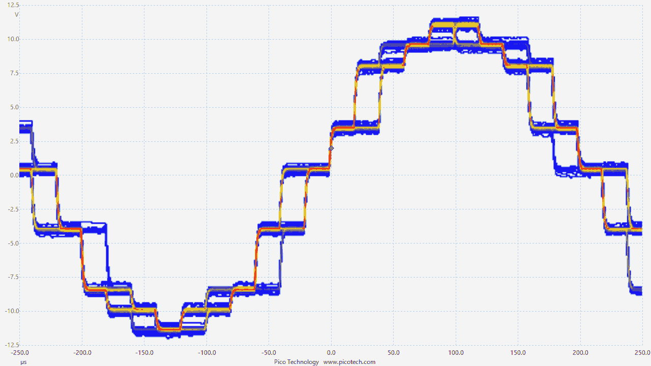 Freetrak’s output is not a thing of great refinement, but the rig filtering gets rid of all the jaggies (Persistence mode on the scope, the vertical axis mistakenly believes I used a 10x rather than 1x probe)