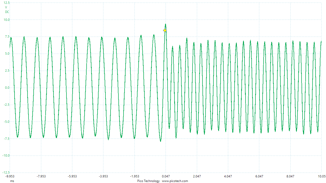 DC shift, the lower trace shows this through a 500Hz Butterworth order 2 HPF