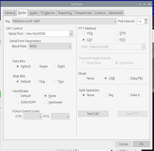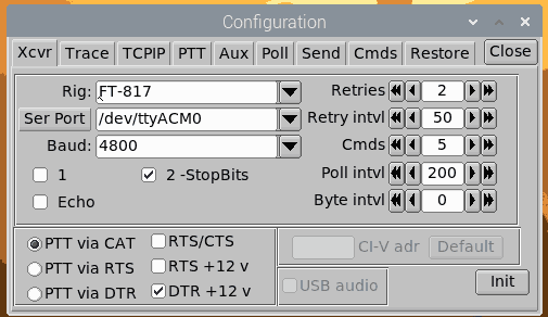 I use FLrig with FLDigi. It’s not the only way to use CAT control with FLDigi, but it’s what I do, using the Raspberry Pi. FLrig really wants to still see your old serial CAT control before it will let you ger far enough to change it, I had to put the USB serial dongle in that controls the FT897 before it would allow me to change it, else it hangs. Forever. Really must remember to switch that back before I give the Ailunce back ;) Start up FLrig