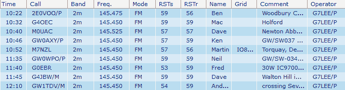 To improve my odds I had chosen the day to coincide with GW0WPO/P who was activating a few SOTA summits, to try and pitch for a summit-to-summit. I caught up with him on GW/SW-034, and again on GW/SW-027 from home. I managed another s2s with GW0AXY/P on GW/SW-037 Craig Yr Allt earlier in the day, and my first contact of the day was Ben 2E0VOO/P activating a HEMA summit near Exeter. That was G/HDC-022 Woodbury Common, so I got a HEMA chase and a SOTA to HEMA s2s for the win. True to form, HEMA activators are also early birds, Ben was first in the log at 10:22 UTC. I missed GW0WPO/P who was alerted at 10:30 and spotted then - on 80m