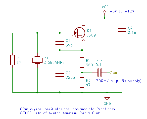 We are recycling the VFO from the previous Intermediate practical, which is a Hartley VFO and uses an air-cored coil and runs at 80m, because VFO stability is always easier at lower frequencies ;) So it would be nice if the crystal oscillator were in the 80m band too. The usual go-to 80m crystal is an American NTSC colour TV sub-carrier crystal at 3.579545 MHz, which are often used in other electronic gizmos where a stable frequency is required because these crystals were made in millions so they are cheap.