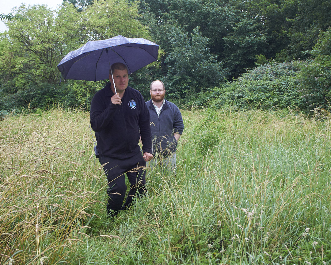 AARC Chairman Matt 2E0FNT with club Membership Sec Mike 2E0RWW standing a little way behind him in the July rain. I should have moved to make that more obvious in the pic but photographer G7LEE didn’t want to brave the rain ;)