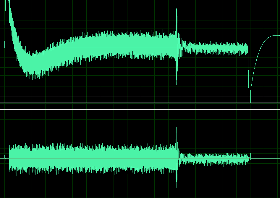 DC shift, the lower trace shows this through a 500Hz Butterworth order 2 HPF