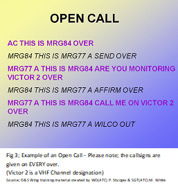 Each would be taught with an example (see Fig 3.) After each type of call is taught, the cadets would then practice