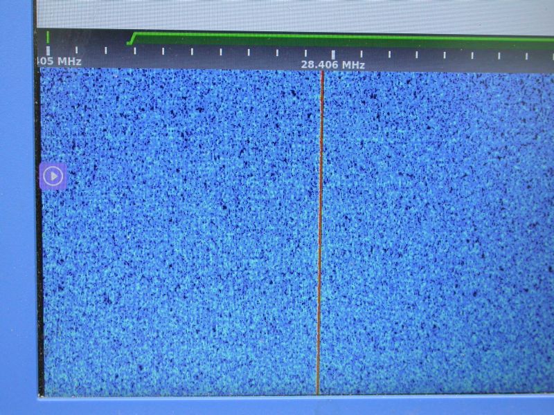 For an intial test I looked for where a 1kHz tuning tone appeared on Weston SDR. The graduations are 100Hz apart at this scale, I would say I was within 50Hz of the 28.406 nominal frequency (28.405 suppressed carrier plus 1kHz audio tone).