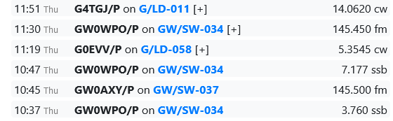 To improve my odds I had chosen the day to coincide with GW0WPO/P who was activating a few SOTA summits, to try and pitch for a summit-to-summit. I caught up with him on GW/SW-034, and again on GW/SW-027 from home. I managed another s2s with GW0AXY/P on GW/SW-037 Craig Yr Allt earlier in the day, and my first contact of the day was Ben 2E0VOO/P activating a HEMA summit near Exeter. That was G/HDC-022 Woodbury Common, so I got a HEMA chase and a SOTA to HEMA s2s for the win. True to form, HEMA activators are also early birds, Ben was first in the log at 10:22 UTC. I missed GW0WPO/P who was alerted at 10:30 and spotted then - on 80m